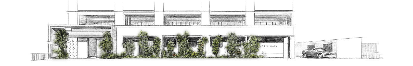 ゲートの先は、緑とアートを五感で愉しむ三層のエントランス。