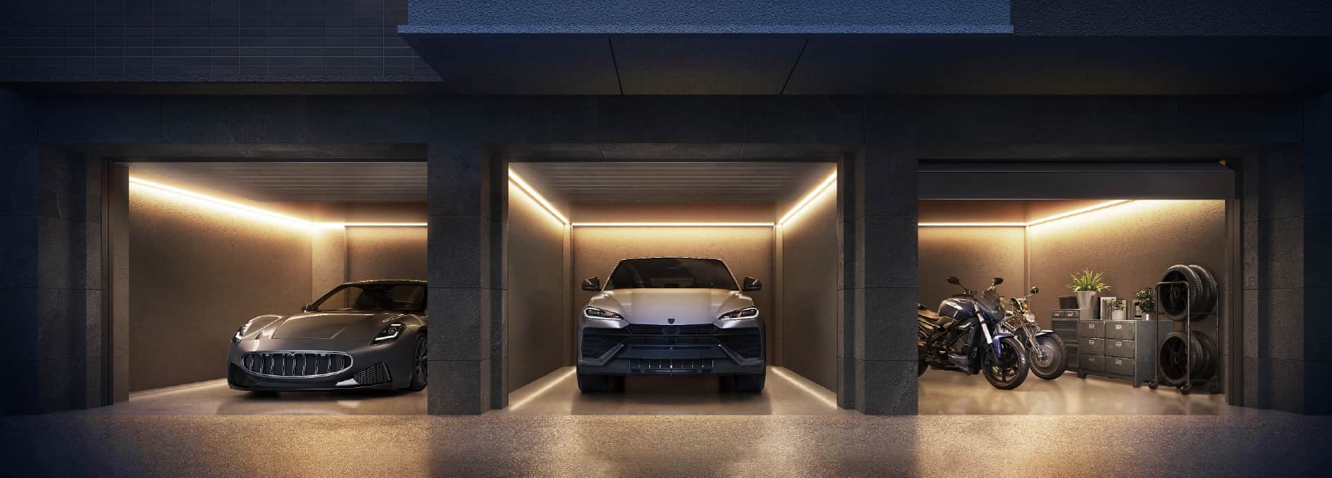 シャッター付ガレージは、盗難や雨風を避け、